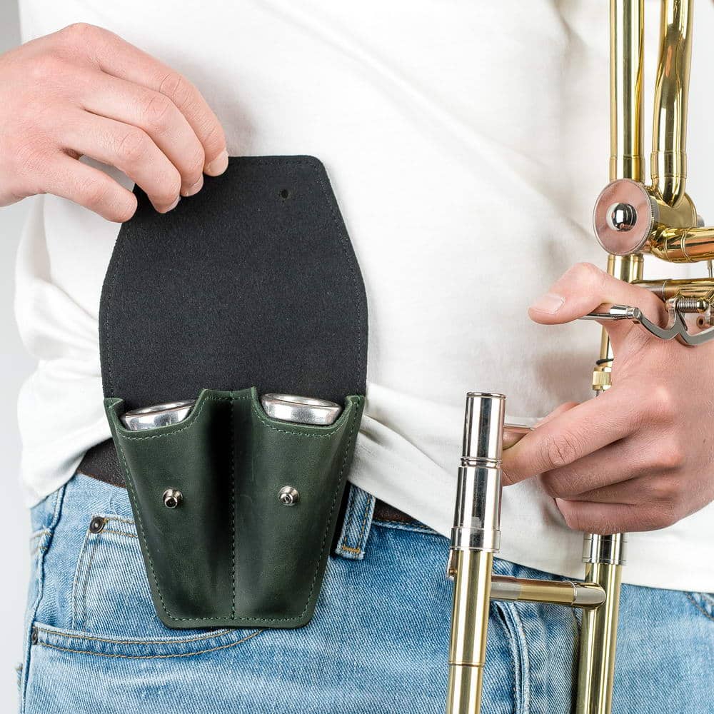 - Made of high-quality leather. The double trombone/ euphonium mouthpiece pouch provides full protection of two mouthpieces.